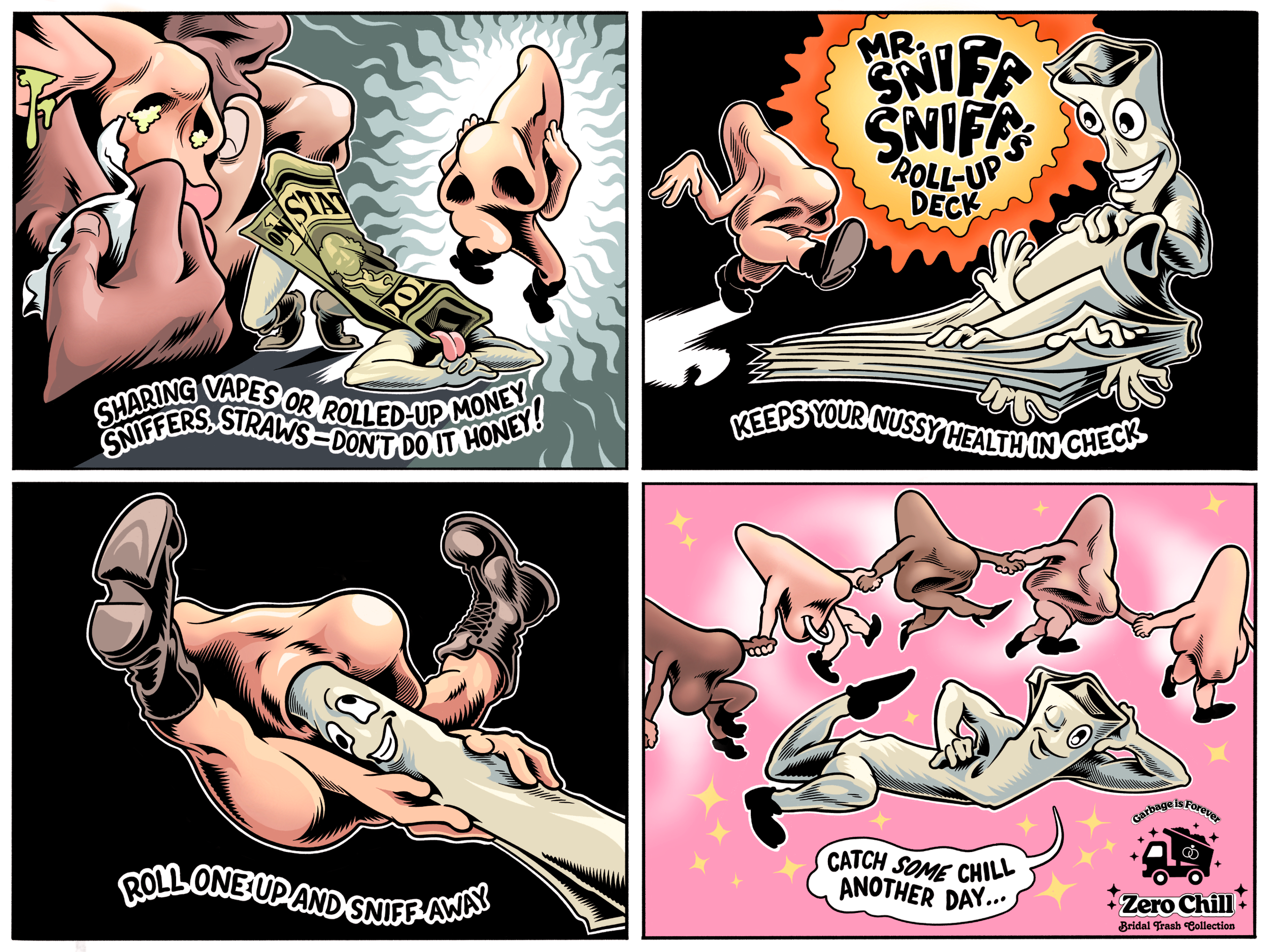 harm reduction comic strip for the November 1st Zero Chill rave in NYC, with text by Kay Gabriel