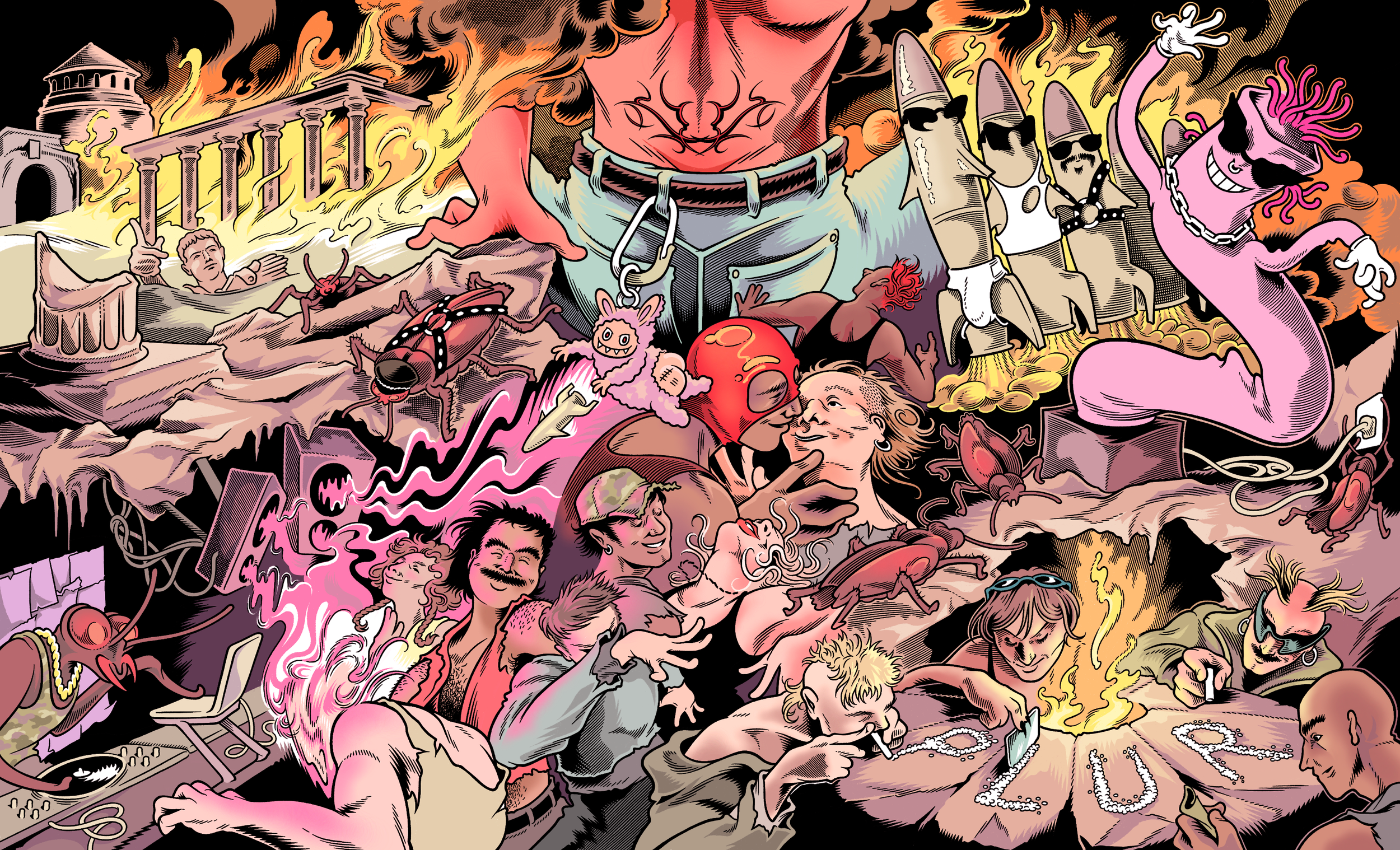 “Eric Kostiuk Williams’ comics are visually defined by their malleability. His forms shine like latex and stretch like taffy, and his stories take place in surreal, psychedelic environments that morph as time passes. That fluid visual aesthetic ties into major themes of his work like gender expression, queer culture, and urban preservation and development, all of which involve people and places in a constant state of change. His new book from Retrofit, Our Wretched Town Hall, collects a variety of his short comics and illustrations, spotlighting his signature style and his skill at telling stories full of emotion and atmosphere in a very short page count.” - Oliver Sava for The AV Club